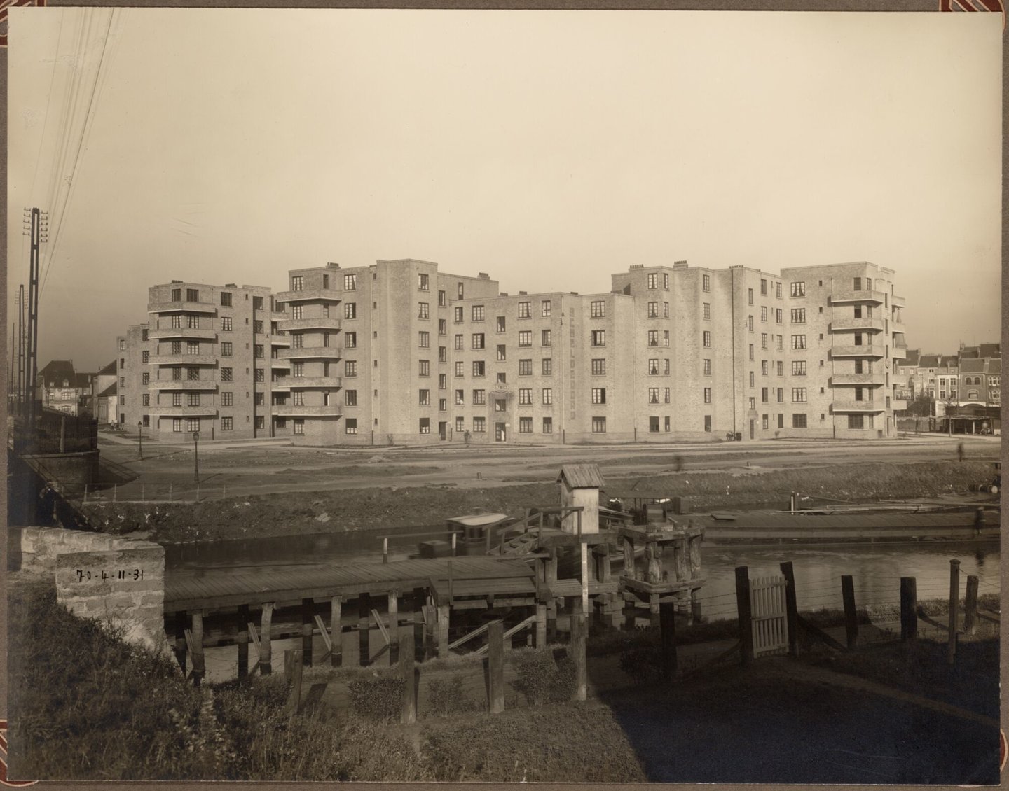 #wonen #huisvesting #Gent #fotopapier #2de kwart 20ste eeuw #reclamebord #lantaarnpaal #Dampoort #Serck nv #huis #sociale woning #boot #Scheldeoord #De Taeye, Paul