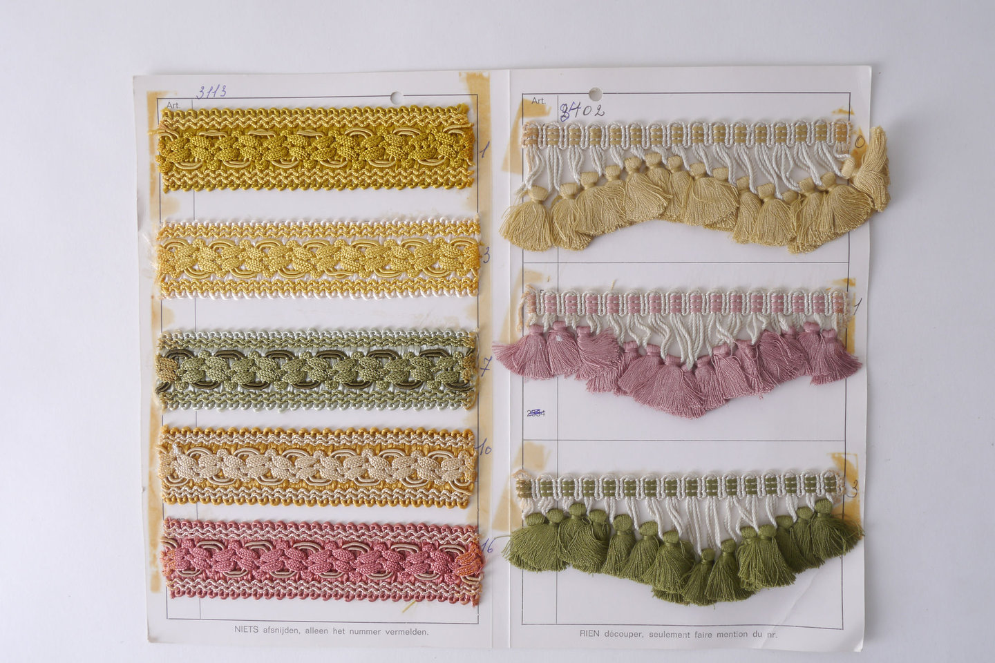 #karton #textiel #interieurtextiel #passementerie #stalen en monsters #stalenkaarten