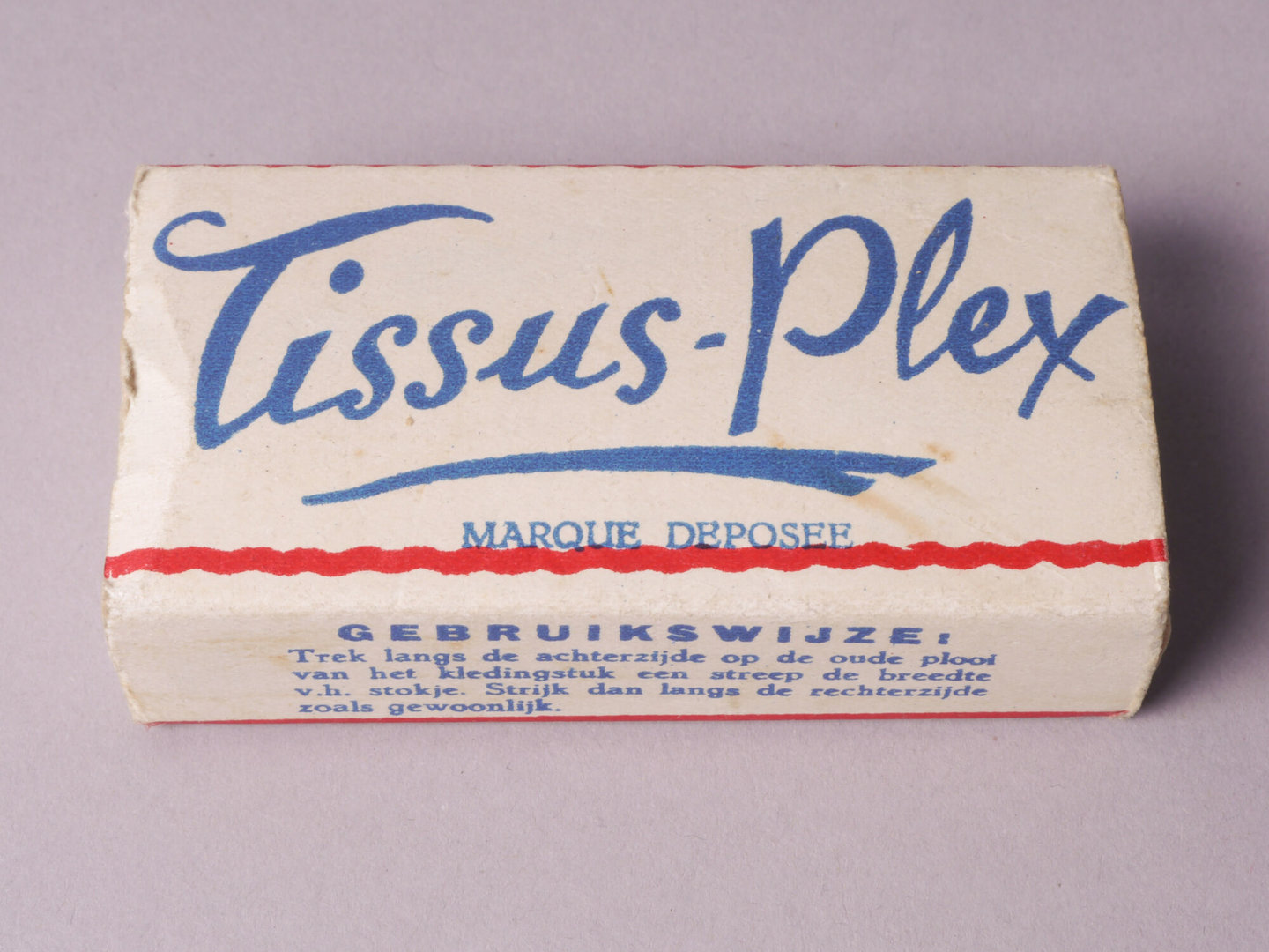 - opschriften: Tissis-Plex / MARQUE DEPOSEE // GEBRUIKSWIJZE : / Trek langs de achterzijde op de oude plooi / van het kledingstuk een streep de breedte v.h. stokje. STrijk dan langs de rechterzijde zoals gewoonlijk. // BON DE GARANTIE ... Fabriek van demonstratie en Col