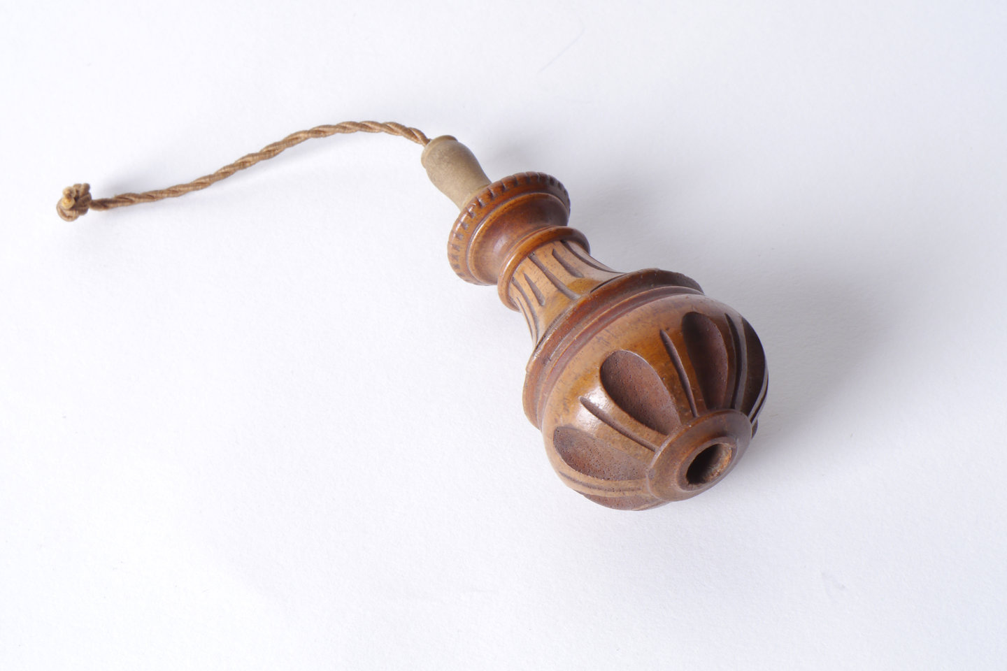 V20967 Houten ,druppelvormige lichtschakelaar, ca 1900-1920.