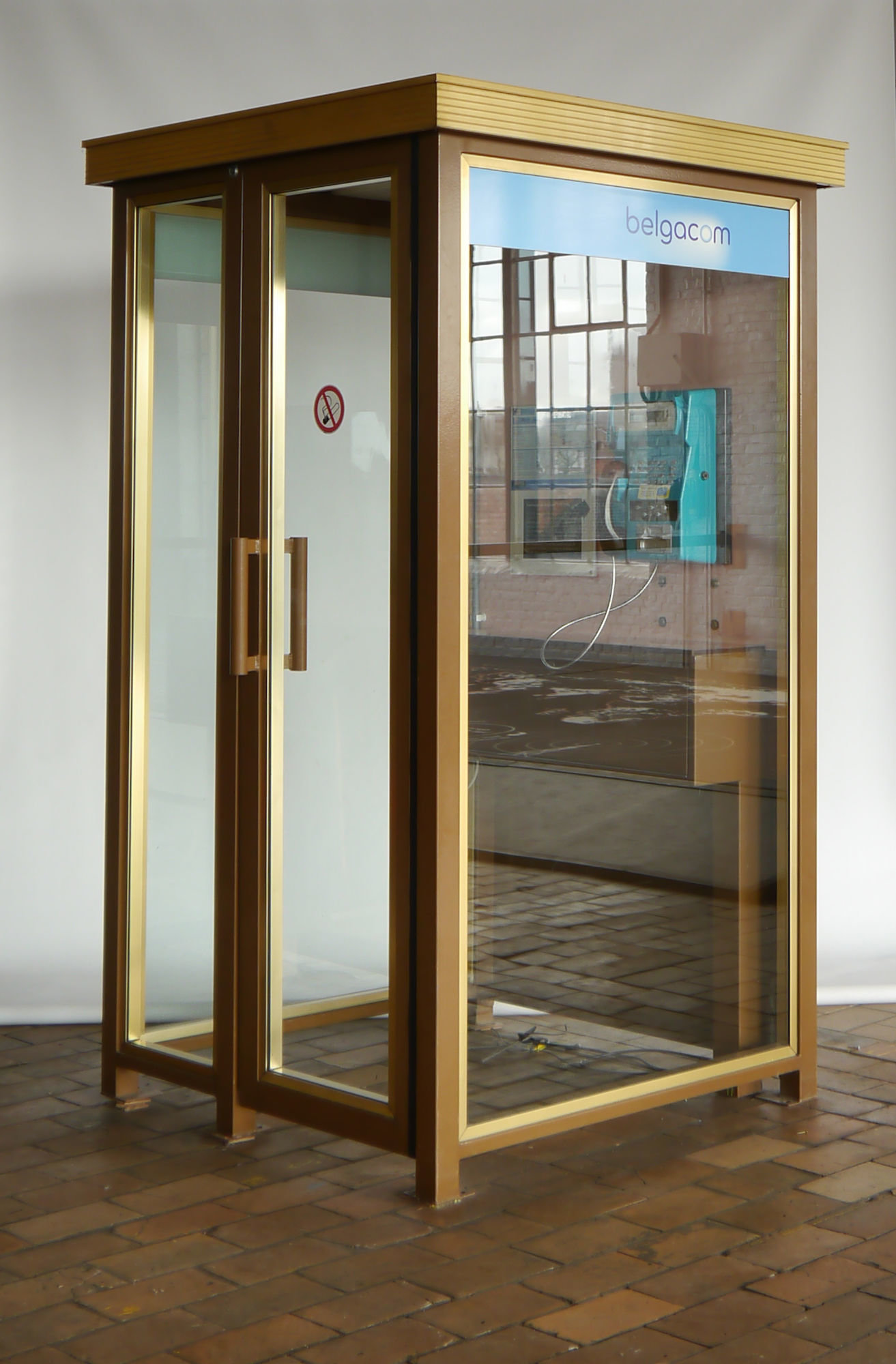 #glas #kunststof #straatmeubilair #telefonie #aluminium #einde 20ste eeuw #informatie en communicatie #telecommunicatie #communicatiemiddel #telefoon #Garnimetal SA #Ascom Monétel SA #Belgacom #telefooncel