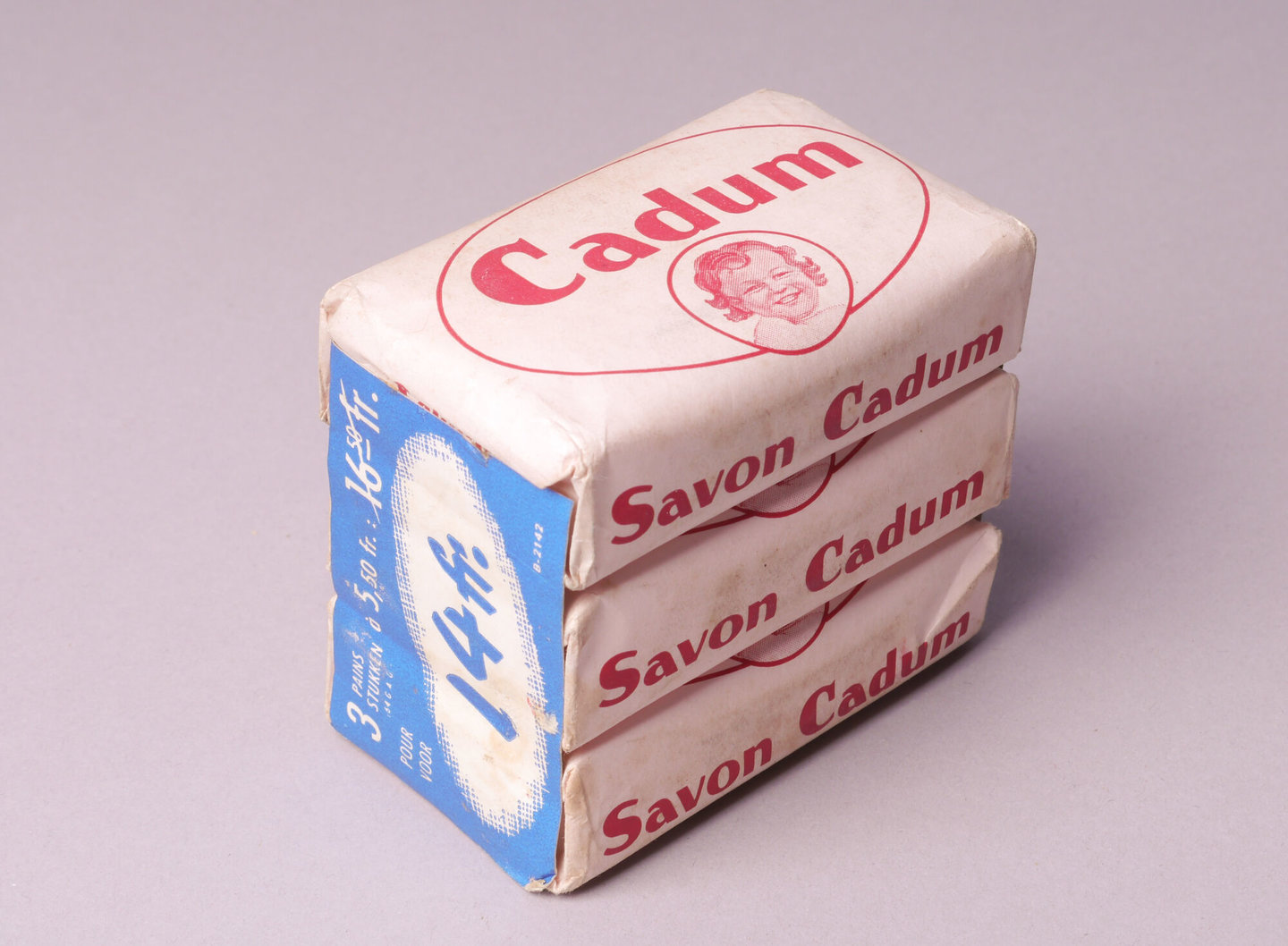 - opschriften: Cadum-zeep // Cadum-zeep met lanoline / De bijzondere zachtheid van Cadum-Zeep is te danken aan / de lanoline, die de huid voedt en doet opfleuren. Het overvloedige, lichte schuim reinigt grondig. Het heerlijke, frisse parfum geeft een gevoel van welbehag