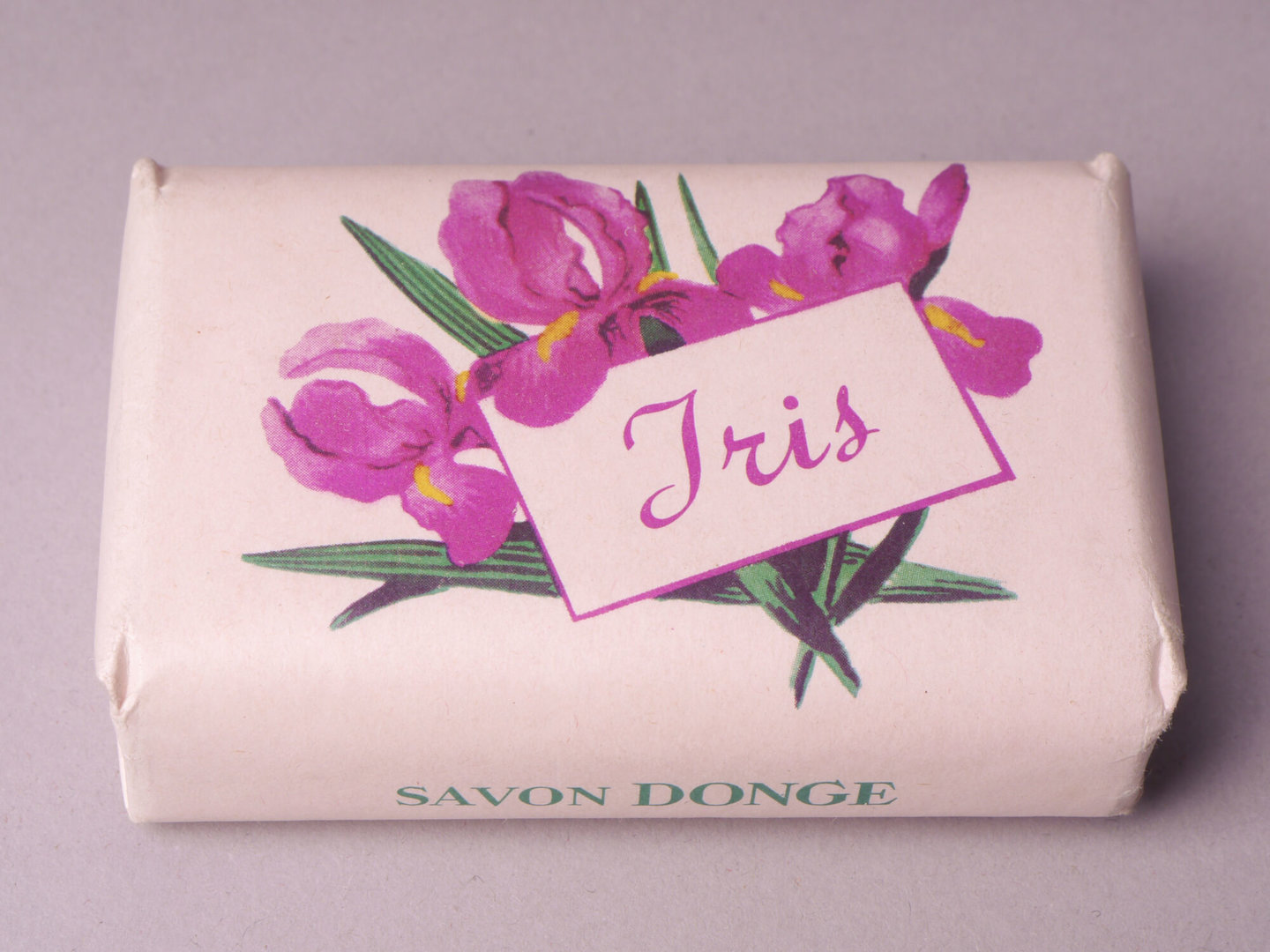 - opschriften: SAVON DONGE / Iris / DONGE ZEEP // DONGE R.C.B. 4853 // DONGE 64 G.A.G.