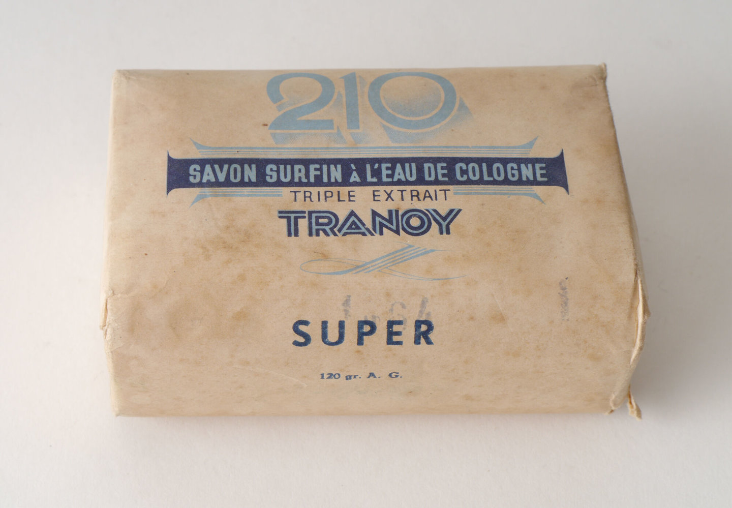 - opschriften: 210 / SAVON SURFIN À L'EAU DE COLOGNE / TRIPLE EXTRAIT / TRANOY // SUPER / 120 gr. A. G.