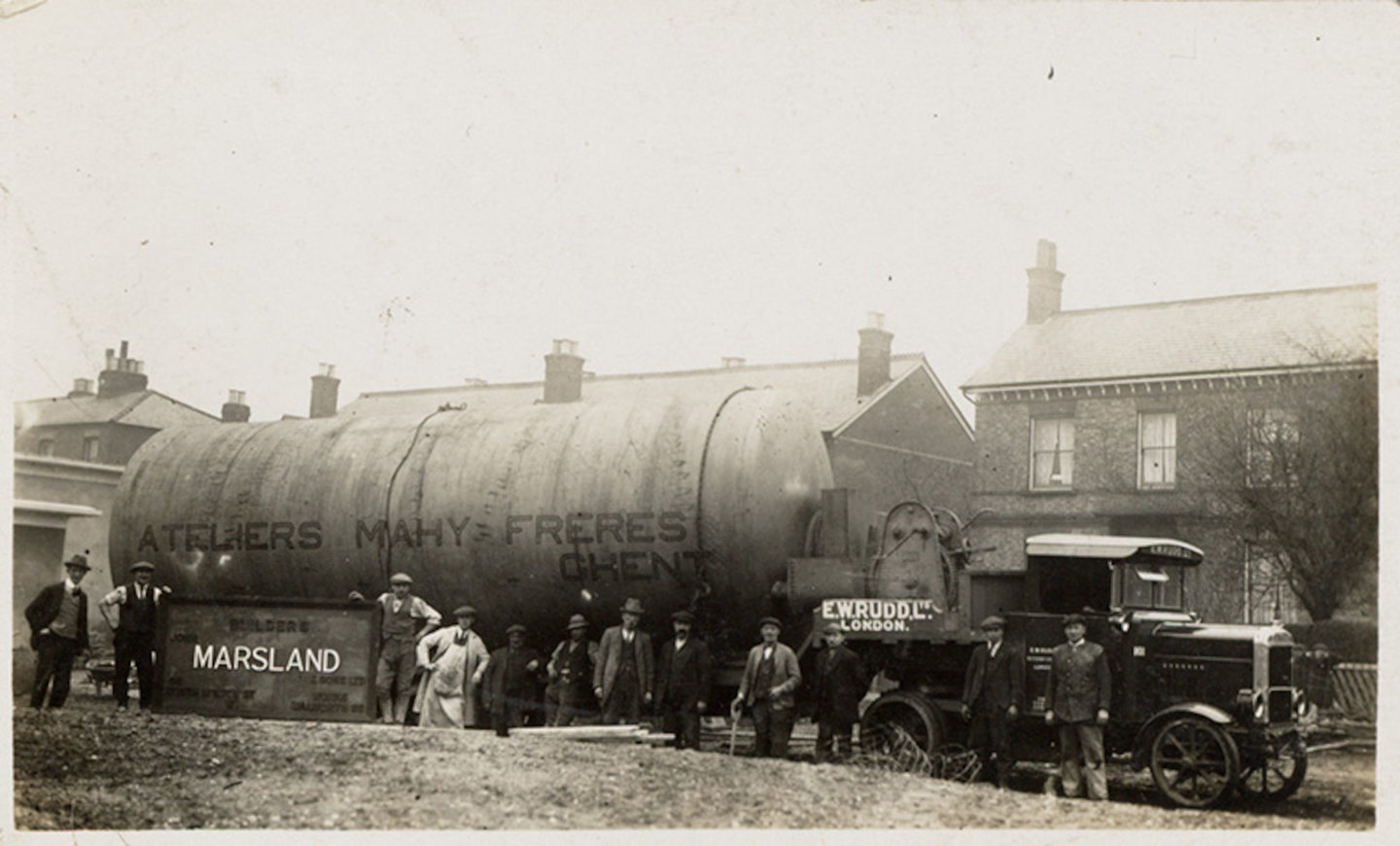 - opschriften: Ateliers Mahy Frères/Gent/E.W. Rudd? Ltd./London./Builders/John/Marsland/& Sons Ltd/36/South Wolton ST/.../works/Walworth 52//