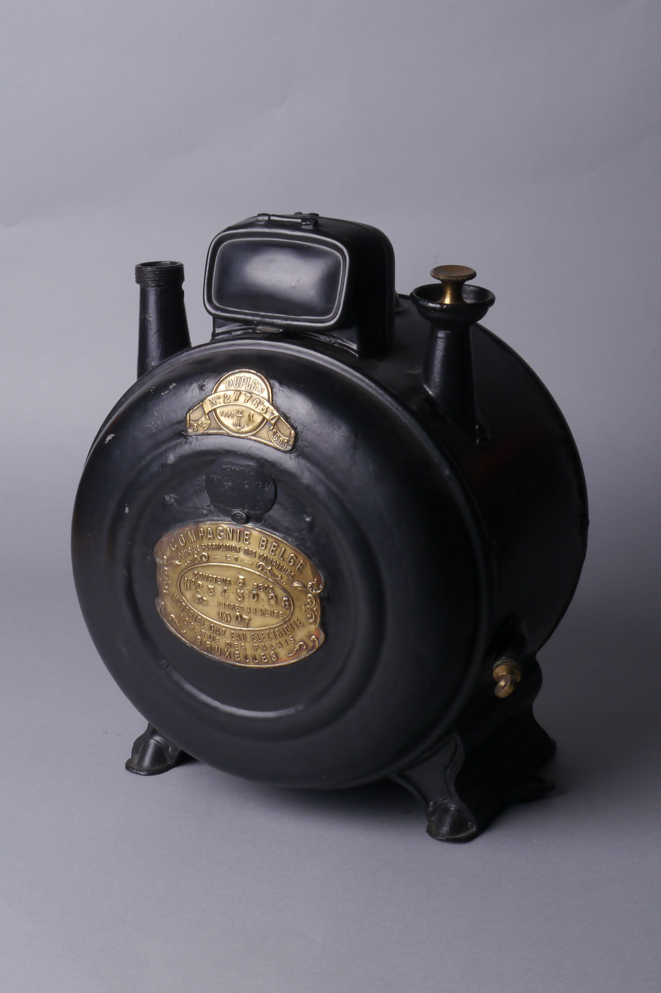 - opschriften: COMPAGNIE BELGE / POUR LA FABRICATION DES COMPTEURS / MATÉRIEL, GAZ, EAU, ÉLÉCTRICITÉ / 129, RUE DES PALAIS / BRUXELLES / COMPTEUR 5 BECS / N° 2345026 / 700 LITRES´À L'HEURE / 1914 // DUPLEX N° 277637 / Bte TYPE 1 S.G.D.G.