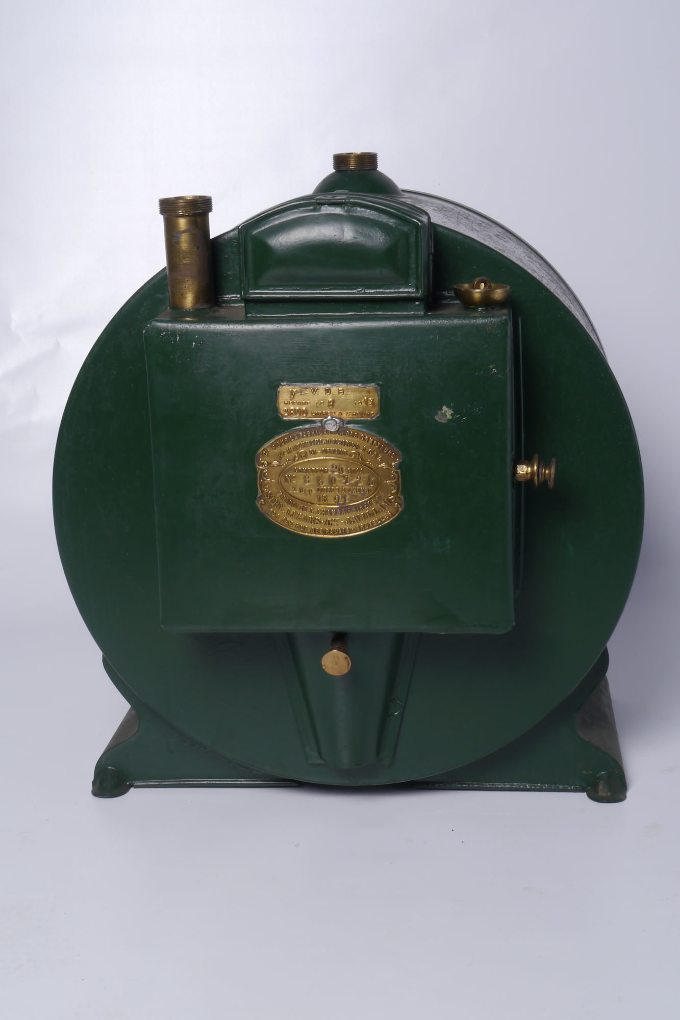- opschriften: CIE POUR LA FABRICATION DES COMPTEURS ET MATÉRIEL D'USINES À GAZ, CI-DEVANT M. NICOLAS, G. CHAMON FOIRET & CIE, SIRY, LIZARS & CIE - J. WILLAMS, 151 155 RUE DES PALAIS - BRUXELLES // 20 BECS / 2800 LITRES Á L'HEURE / N° 850723
