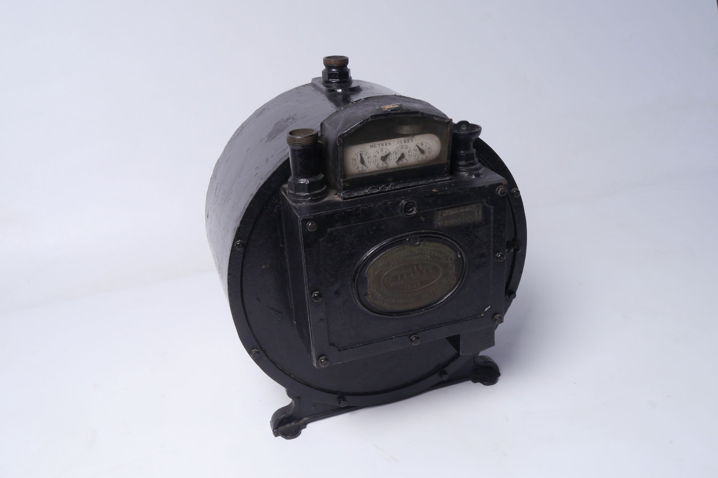 - opschriften: PROPRIETE DE L'USINE / A GAZ / D'OSTENDE // Cie POUR LA FABRICATION DES COMPTEURS / ET MATÉRIEL D'USINES À GAZ / CI-DEVANT / M. NICOLAS G. CHAMON FOIRET & Cie / SIRY. LIZARS & Cie - J. WILLIAMS / 151-155 RUE DES PALAIS - BRUXELLES / COMPTEUR 10 BECS / N°