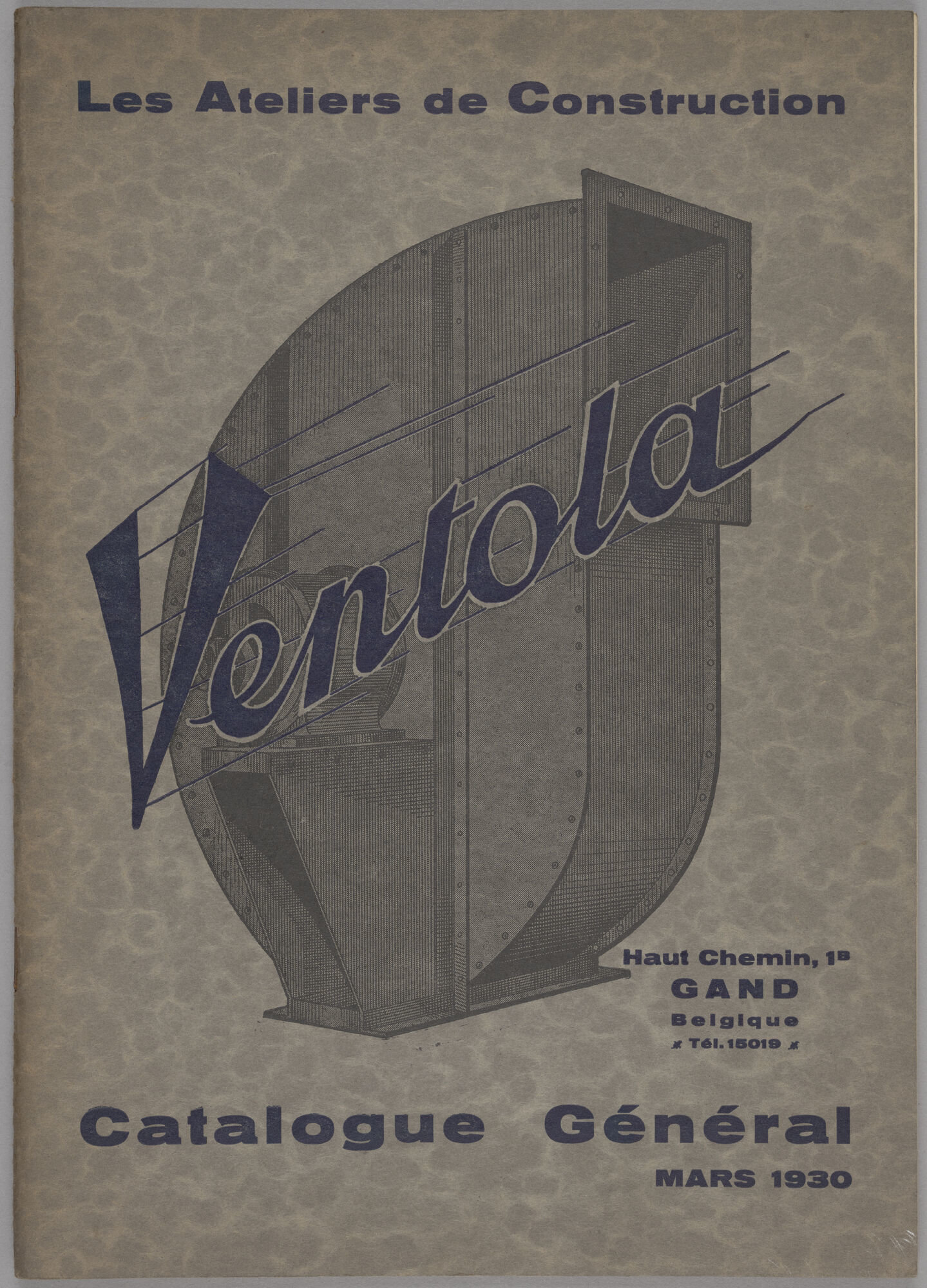 - opschriften: Les Ateliers de Construction / Ventola / Haut Chemin, 1b / GAND / BELGIQUE / Tél. 15019 / Catalogue Général / MARS 1930