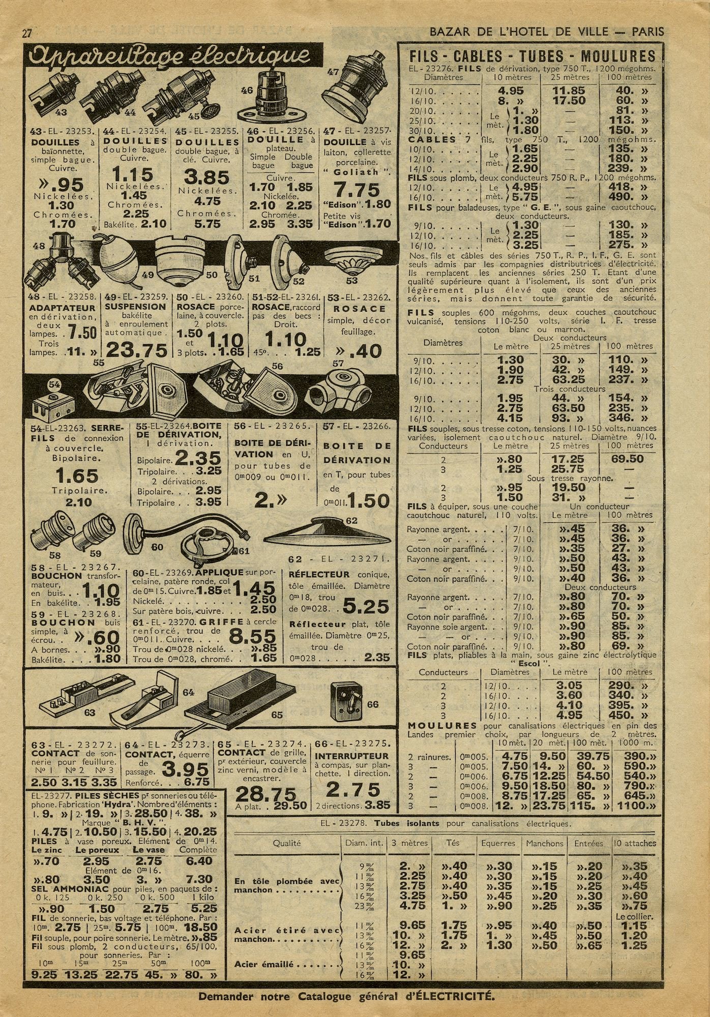- opschriften: BAZAR DE L'HOTEL DE VILLE - PARIS / appareillage électrique