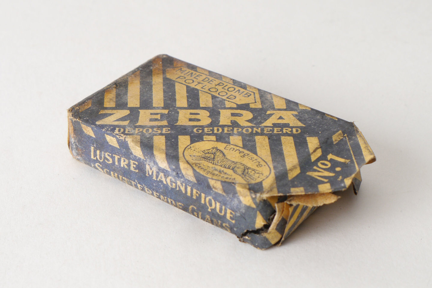 - opschriften: MINE DE PLOMB / POTLOOD / ZEBRA / DEPOSE GEDEPONEERD // N°1 // SCHITTERENDE GLANS