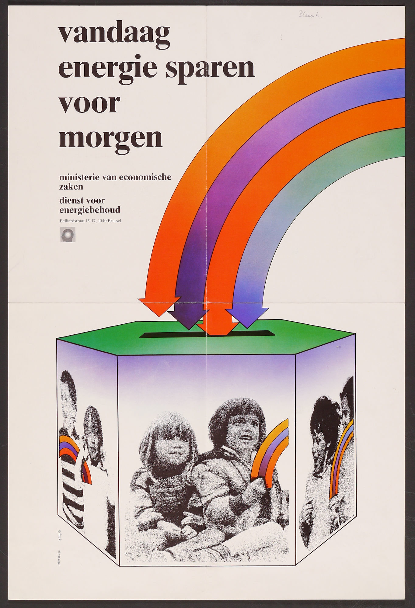 - opschriften: vandaag / ernergie sparen / voor / morgen / ministerie van economische / zaken / dienst voor / energiebehoud / Belliardstraat 15-17, 1040 Brussel