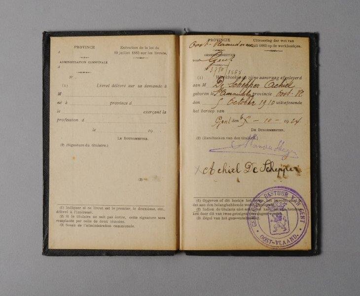 - opschriften: Administration communale d /gemeentebestuur van Gent/N° 3780/1569/Livret/werkboekje/ appartenant/ toebehoorende De Schepper Achiel