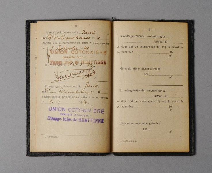 #papier #1ste helft 20ste eeuw #kunstleer #werken #werkboekje #arbeidswetgeving #kinderarbeid #UCO Tissage De Hemptinne Jules nv #textielarbeider