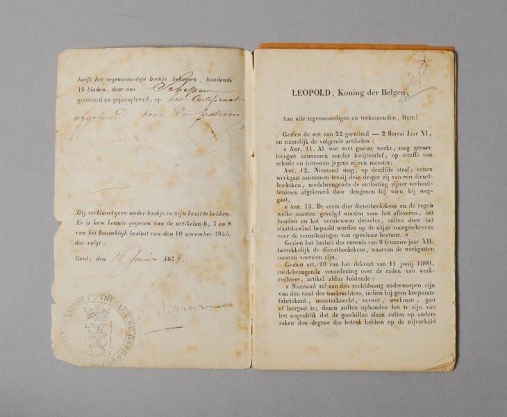 - opschriften: werkmansboekje/ afgeleverd /in uitwerking van het Koninklijk/ besluit van 10 november 1845