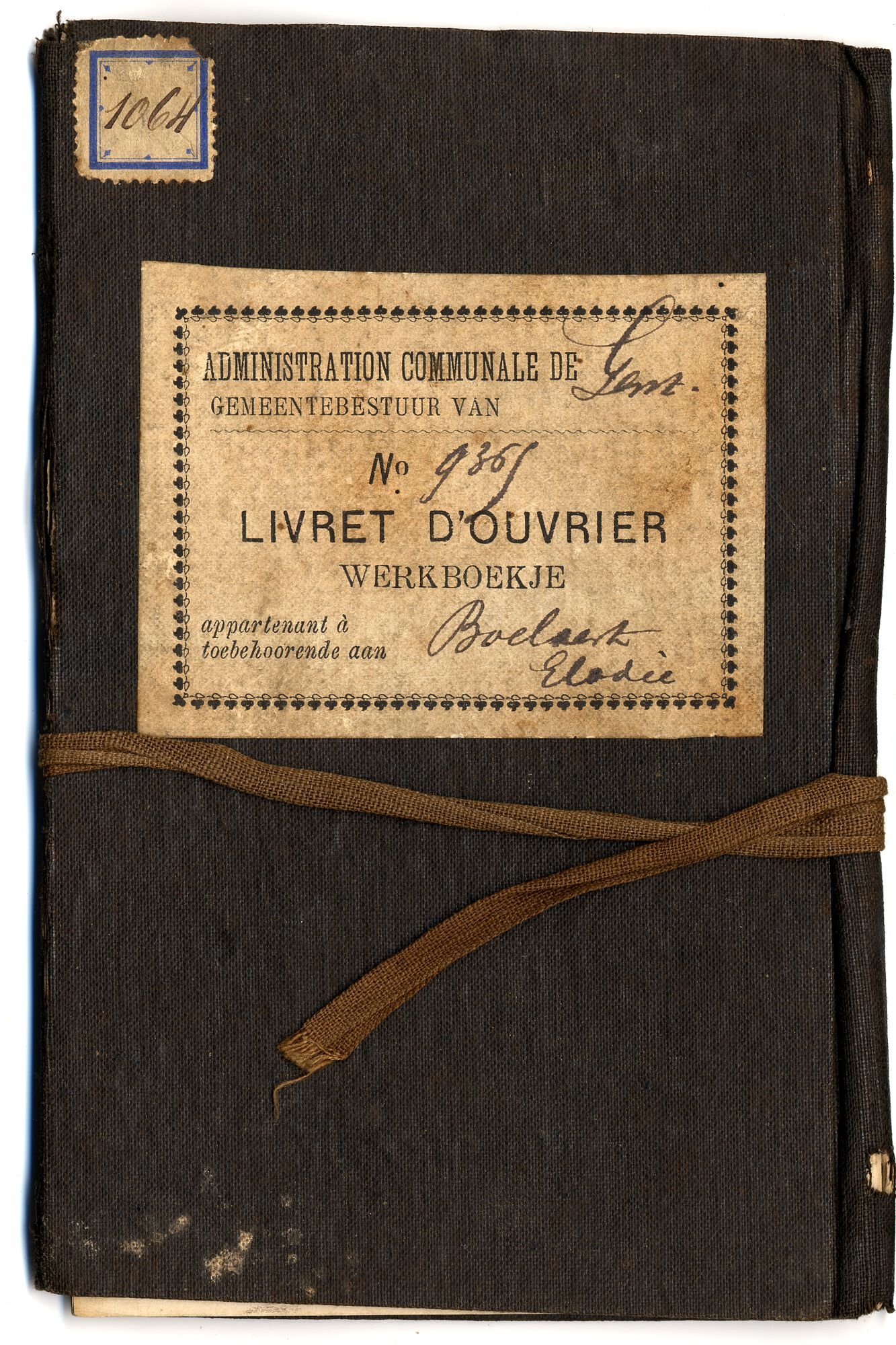 - opschriften: 8664/AR595/Administration communale de /gemeentebestuur van Gent/ Livret d'ouvrier/werkboekje /appartenant à/ toebehoorende aan/ Boelaert Elodie