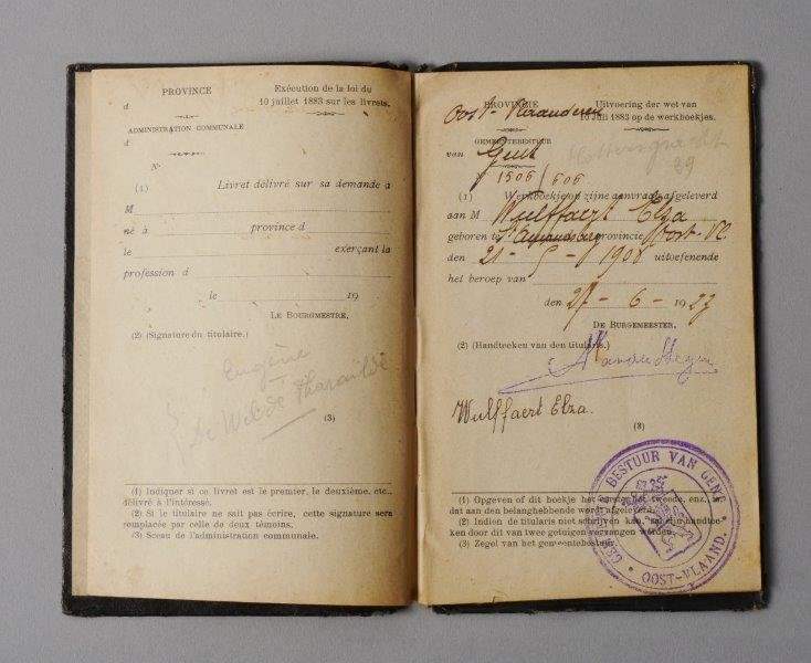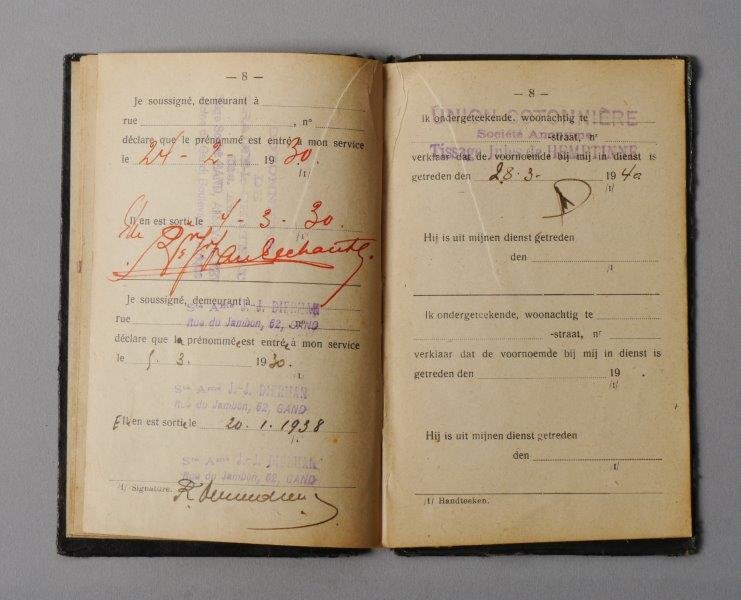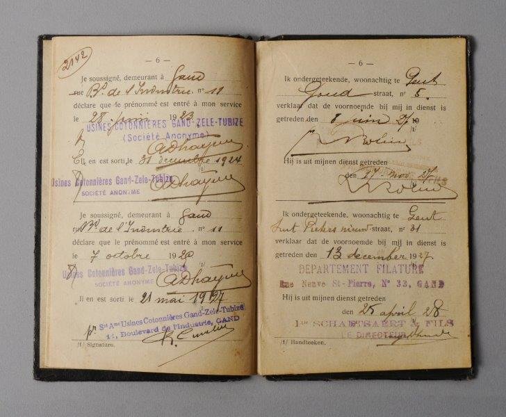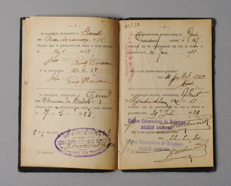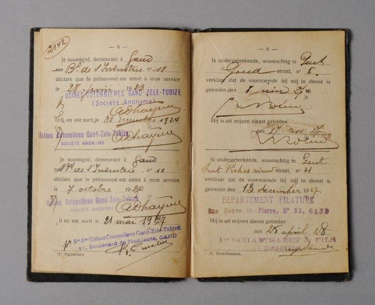 #papier #1ste helft 20ste eeuw #kunstleer #werken #Usines Cotonnières Gand-Zele-Tubize NV #Usines Cotonnières de Belgique NV #werkboekje #arbeidswetgeving #kinderarbeid #Texas nv #textielarbeidster #UCO Tissage De Hemptinne Jules nv #Filature Moderne nv #Schaetsaert & Fils #Van Acker G. & M. nv #Cotonnière de Braine-le-Chateau nv #Dierman J.J. nv #Monckarnie