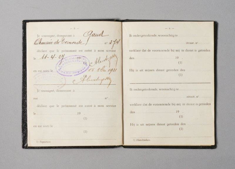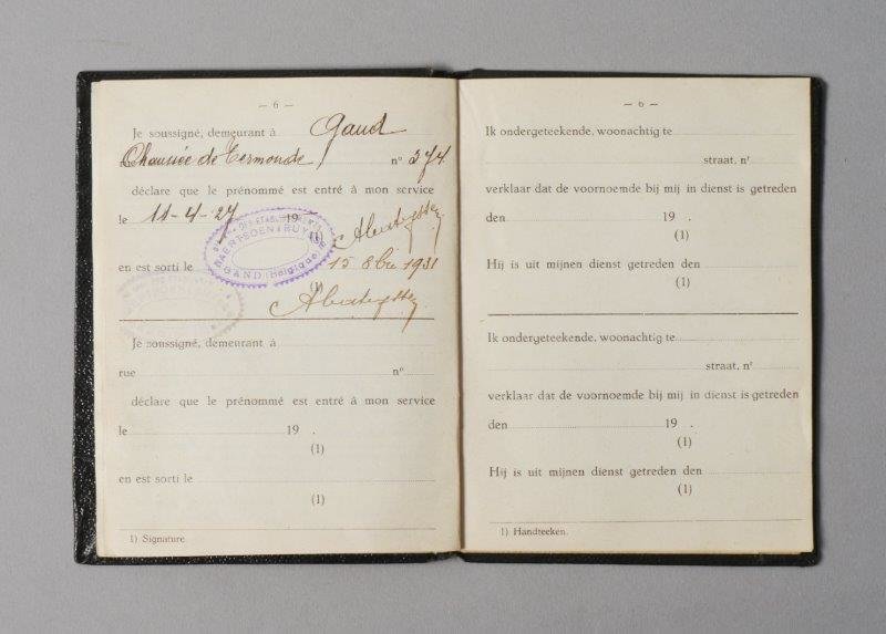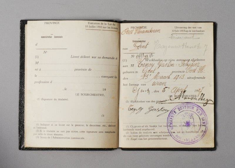 - opschriften: Administration communale de gemeentebestuur van Gent/n°6413/2812 Livret /werkboekje appartenant toebehoorende Trency Gaston