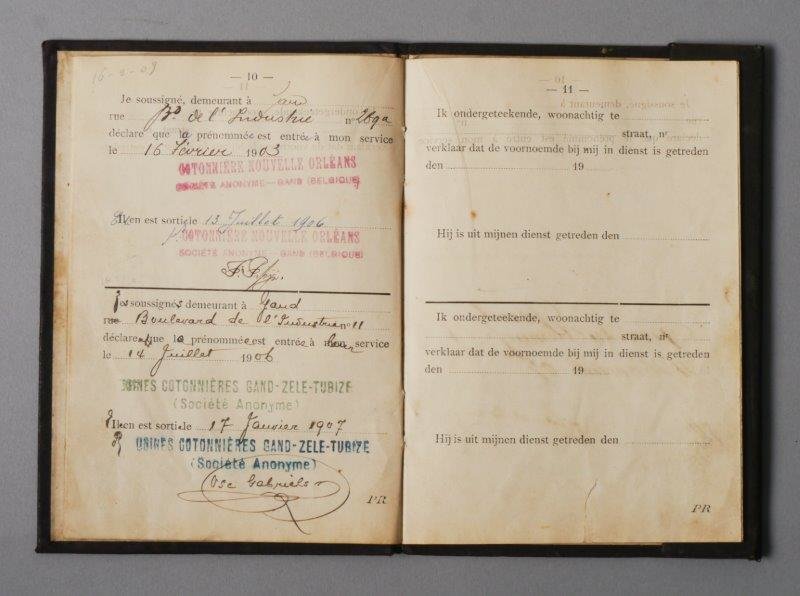 #papier #1ste helft 20ste eeuw #werken #Usines Cotonnières Gand-Zele-Tubize NV #werkboekje #arbeidswetgeving #FNO Filature Nouvelle Orléans NV #kinderarbeid #textielarbeidster #La Linière Gantoise nv #La Lys nv