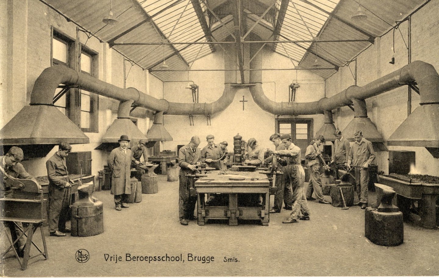 #metaal #midden 20ste eeuw #VTI Brugge #onderwijs en opleiding #Brugge #smeden #prentkaart