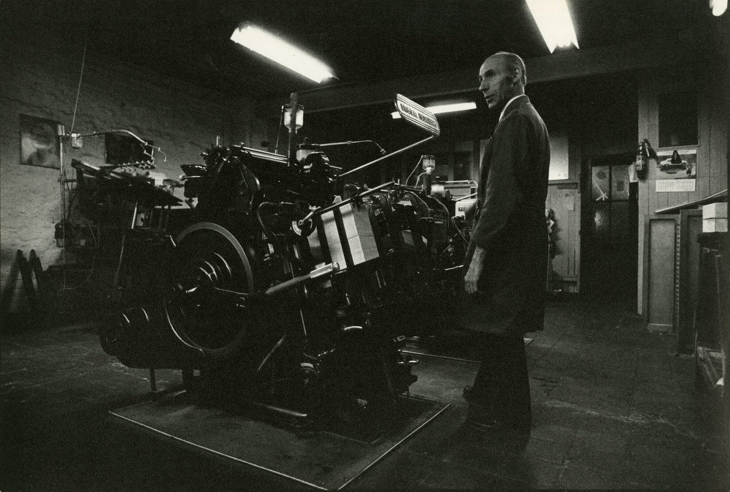 Personeel van drukkerij Geltmeyer aan de Heidelberg degelpers