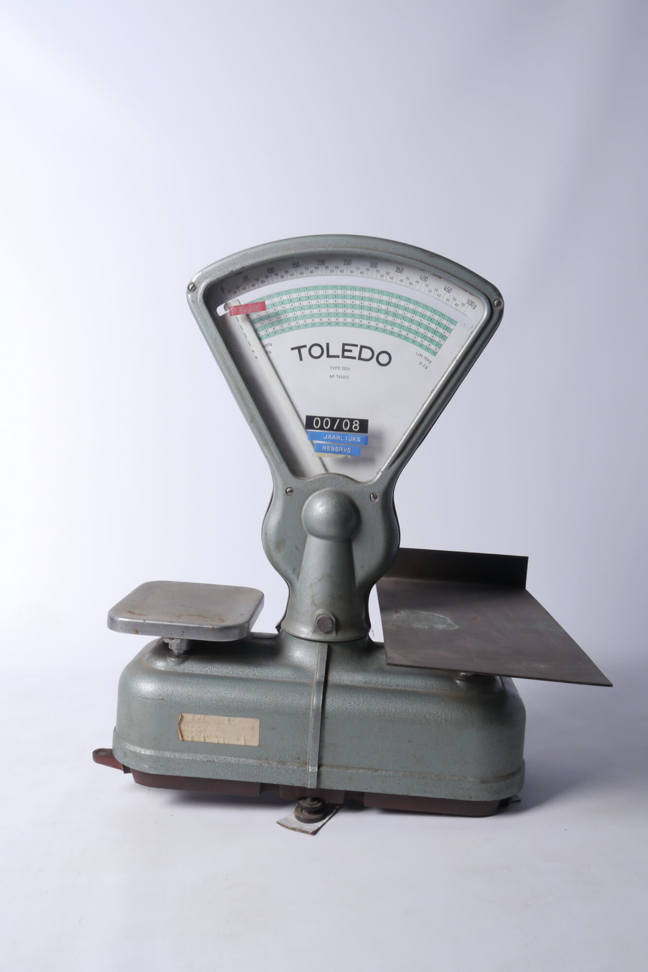 #glas #metaal #3de kwart 20ste eeuw #weegschaal #meettoestellen voor gewicht #handel en distributie #kleinhandel en retail #Toledo