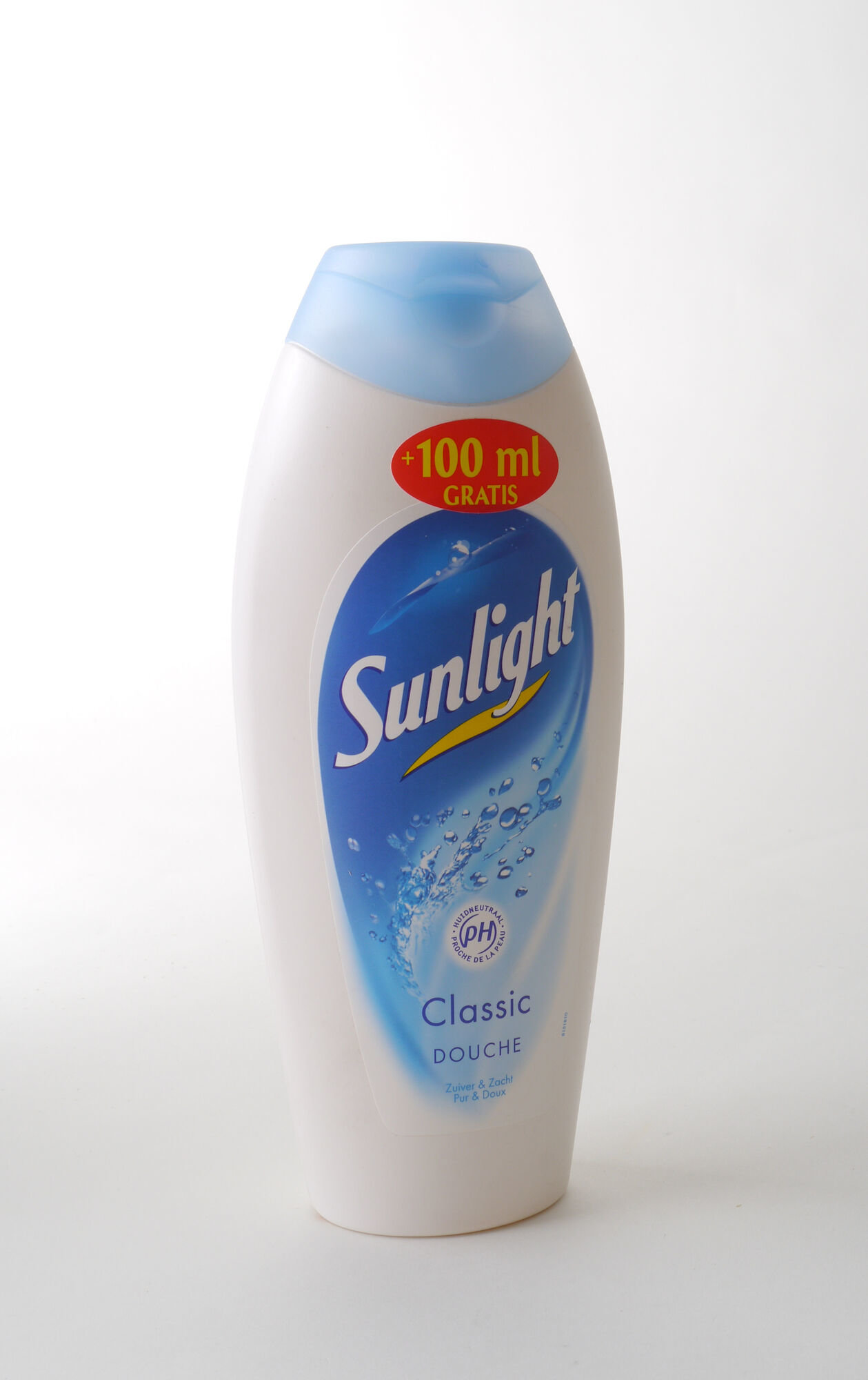 - opschriften: Sunlight / pH huidneutraal / Classic / DOUCHE / Zuiver & Zacht