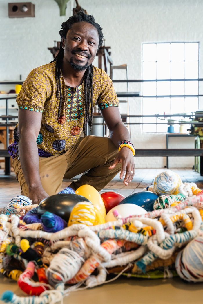 Hij onderzocht hoe hij eigen kunstwerken van textiel kon creëren, gebaseerd op stoffen uit de museumcollectie. Hierbij had hij voortdurend oog voor herinneringen aan en de geschiedenis van zijn land en continent. Hij boog zich over vragen rond de evolutie van stoffen in Congo, zonder westerse invloeden. Zo maakte hij ook een brugje naar het thema dekolonisatie: veel Afrikanen zijn door kolonisatie oude traditionele gebruiken vergeten, waardoor de creativiteit in Afrikaanse stoffen sterk afgezwakt is.