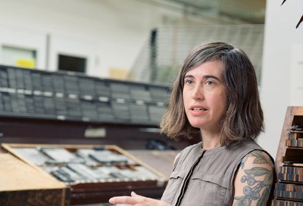 De Amerikaanse Kate Copeland werkt aan de Pacific Northwest College of Art aan de Willamette University in Portland (VS) en creëert handgemaakte boeken aan de hand van verschillende technieken, zoals letterpress of fotogravure. In het Industriemuseum verricht ze zes maanden lang onderzoek rond de houten drukletters uit de museumcollectie. Ze hoopt ook hier bij ons een boek of een reeks prints te voltooien. Tegelijkertijd geeft ze workshops aan de Koninklijke Academie voor Schone Kunsten in Antwerpen. Meer over Kate ontdek je in dit interview of op haar persoonlijke webstek.