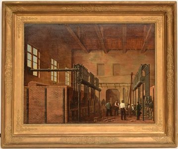 Het schilderij werd in 1833 geschilderd door B. Neyt en geeft een binnenzicht op de allereerste gasfabriek van Gent, die toen gevestigd was aan de Krook. De expo toont ook een schakelbord uit de collectie van het Industriemuseum. Het is een indrukwekkend schakelbord op een marmeren plaat van het merk Declercq Frères.