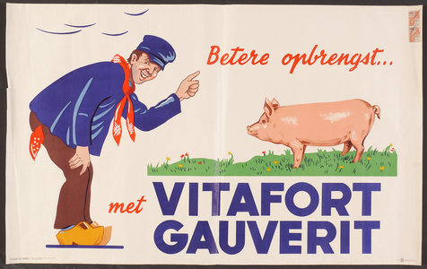 Zo kan je tussen 6 maart 2020 en 31 augustus 2021 een bezoekje brengen aan het Brusselse Museum van de Molen en de Voeding in Evere. Daar loopt de tentoonstelling ‘Food and the City - de stad voeden van gisteren tot vandaag’. Daar vind je ook 13 collectiestukken van het Industriemuseum, waaronder deze fijne affiche ter promotie van veevoeding Vitafort van het merk Gauverit uit 1951.