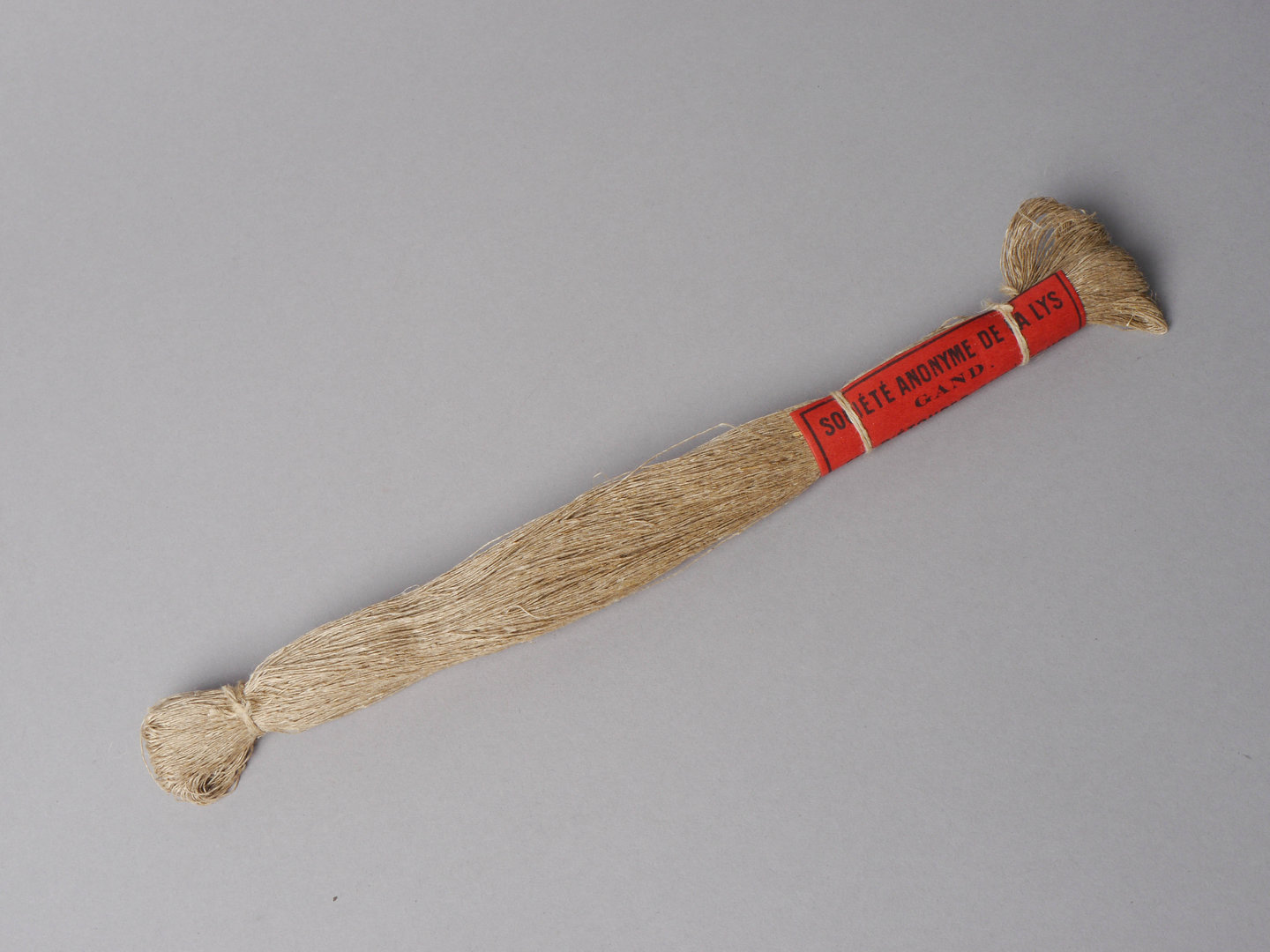 Een porseleinkaart van een fabriek vormde vaak het visitekaartje van het bedrijf in kwestie. Marit vond in de collectie een kaartje van La Lys, een Gentse vlasspinnerij. Nog leuker: in de collectie bevindt zich ook een staal ongebleekt linnen garen van diezelfde fabriek.