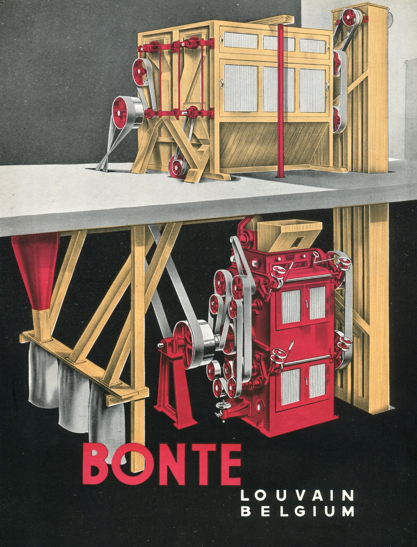 In 1896 start Louis Bonte in Staden bij Roeselare een werkplaats die machines bouwt op vraag van de klant. Hij ziet een kans om in 1906 in Leuven het constructiewerkhuis ‘Usines Stuckens’ over te nemen en verhuist. Ze bouwen er van alles, van roterende droogovens tot gasmotoren. Maar door de nieuwe locatie lopen er ook opdrachten voor maalinstallaties binnen. Leuven heeft op dat moment immers heel wat graanmaalderijen, veevoederbedrijven en best wat brouwerijen (eentje genaamd ‘Artois’ werd zelfs een internationale ster). Via herstellingen leert Bonte de sector kennen. Vanaf 1913 verandert de naam naar ‘Maalderijen- en Motorenbouw Louis Bonte’.