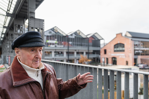 Jean Behaegel aan Dok Noord, de voormalige ACEC-site in Gent. Foto door © Martin Corlazzoli, 2022.
